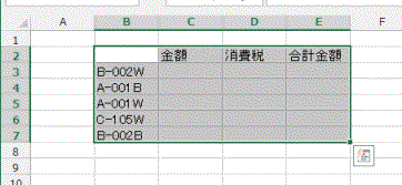 - 統合後のスタイルが決まっている場合は、下図のように列に出しや行の項目を入力しておき、範囲を指定してから統合を実行することもできます。