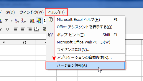- Excel2003と表示されます。ビルド番号は11.xxxxxxxと表示されます。
