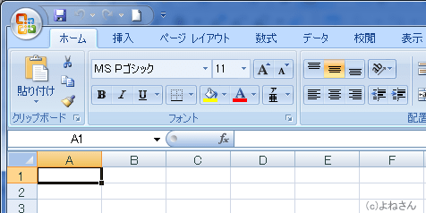 - 特徴的なのは[Office]ボタンの存在です。「ファイル」タブがありません。