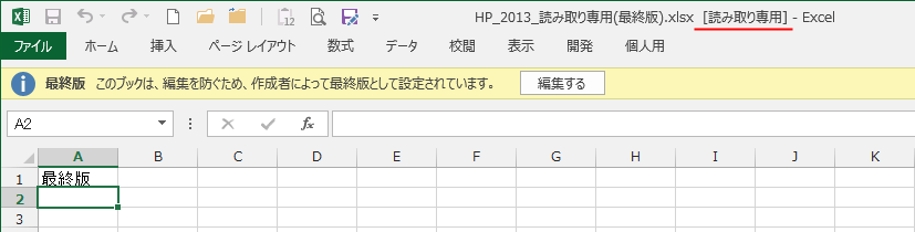 - 「最終版にする」とはファイルが最終版であることを閲覧者に伝えることが主です。