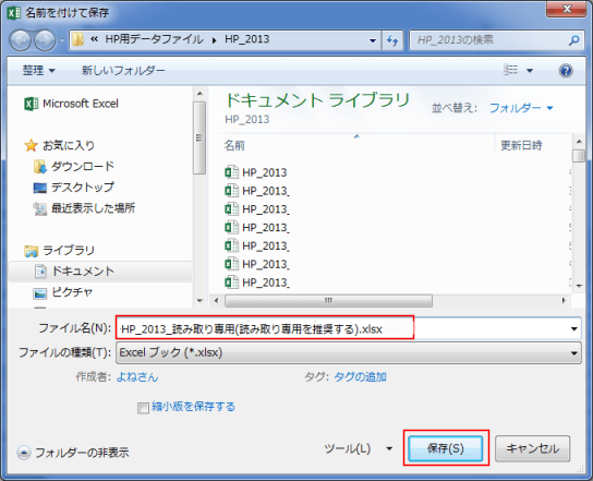 よねさんのExcelとWordの使い方|エクセル2013基本講座:目次|バックステージ ビュー|ブックの操作とブックの共有|「読み取り専用」に関する設定方法