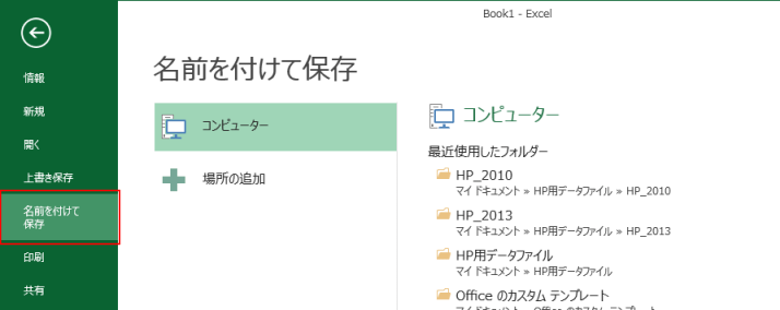 - [名前を付けて保存]を選択して、「コンピューター」または「最近使用したフォルダー」などで保存場所を選択します。