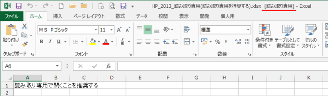 - [はい]ボタンをクリックすると、タイトルバーのファイル名の後ろに[読み取り専用]と表示されています。