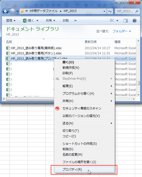 「読み取り専用」の解除方法 Topへ