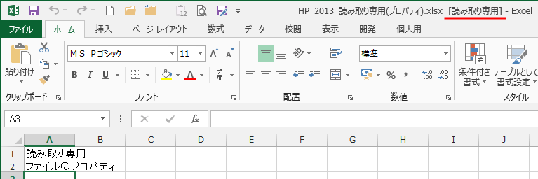 - タイトルバーのファイル名の後ろに[読み取り専用]と表示されています。