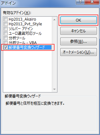 Excel2013で郵便番号変換ウィザードは使えるのか?