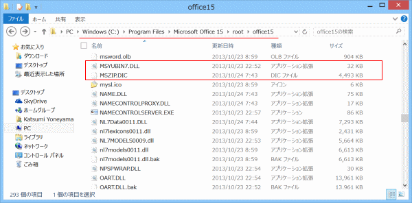 C:\ProgramFiles\Microsoft Office 15 \root ¥Office15 に見つかりました。