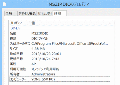 - MSZIP.DICのプロパティ