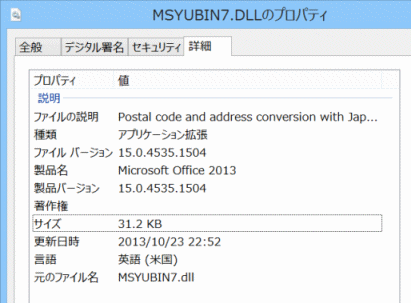 - MSYUBIN7.DLLのプロパティ