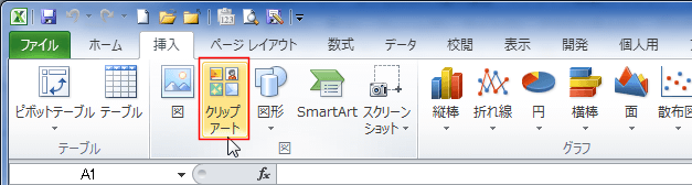 - Excel2010では[挿入]タブに[クリップアート]がありました。