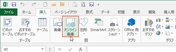- Excel2013では[挿入]タブに[オンライン画像]となっています。