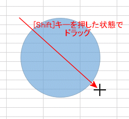 - [Shift]キーを押した状態でドラッグすると、図形の縦横比を保った形状で挿入することができます。