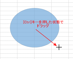 - [Ctrl]キーを押した状態でドラッグすると、ドラックの開始位置を中心にして図形を挿入することができます。