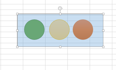 - 下図の作成手順は3つの円を描画した後、四角形を上に(前面に)描画しています。四角形は透明度を70%に設定して背面の図形が透過して見えるようにしています。