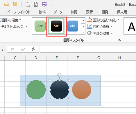 - 背面の図形が選択できましたので、図形スタイルでスタイルを変更した例です。
