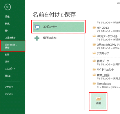 - [名前を付けて保存]を選択して、[コンピューター]を選択します。