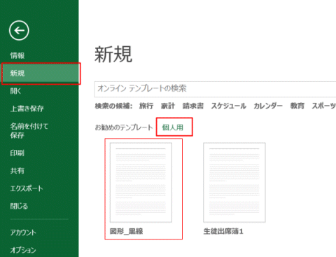 テンプレートの[個人用]をクリックします。