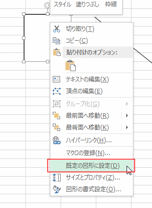 - 書式を変更した四角形を右クリックして[既定の図形に設定]を実行します。