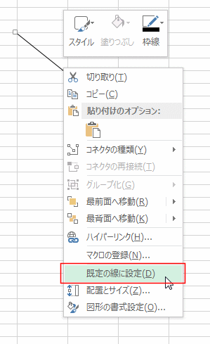 - 書式を変更した直線を右クリックして、[既定の直線に設定]を実行します。