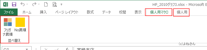 - 「個人用マクロ」「個人用」というリボンはExcel2010で作成していたリボンです。