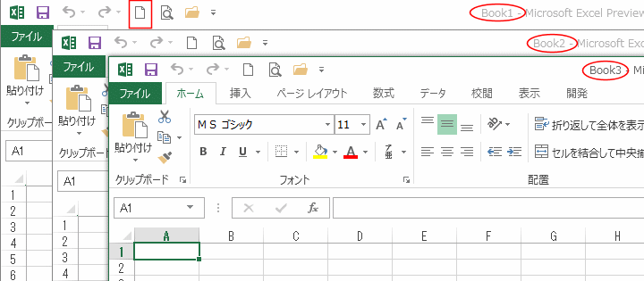 - 新規作成ではファイル(ブック)が別ウィンドウで開くようになっています。