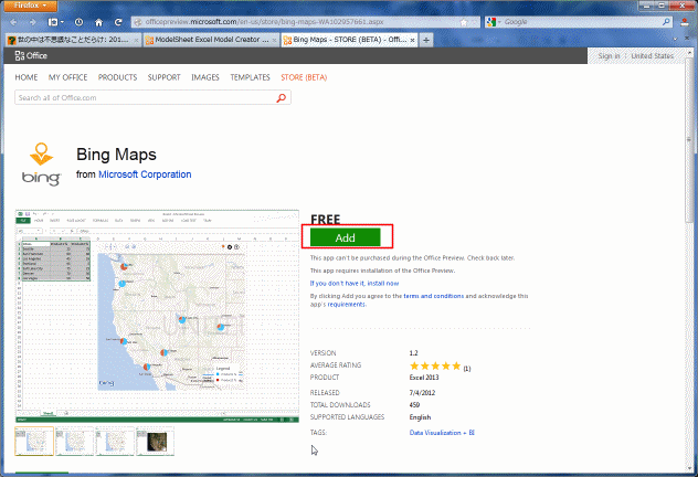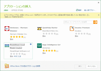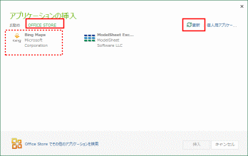 [Office Store]をクリックし、[更新]をクリックすると使用できるようになったアプリが表示されました。