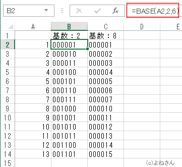 | 4 | BASE | 指定された基数 (底) のテキスト表現に、数値を変換します。 |
