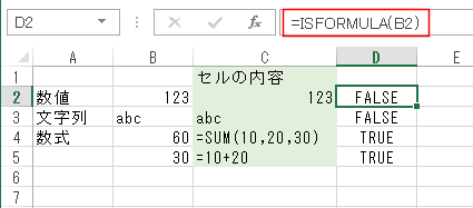 | 34 | ISFORMULA | 数式が含まれるセルであるか否かを調べ、TRUE または FALSE を返します。 |
