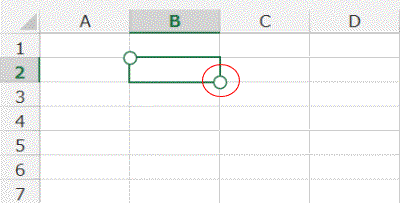 選択したセルの左上と右下にハンドルが表示されます。