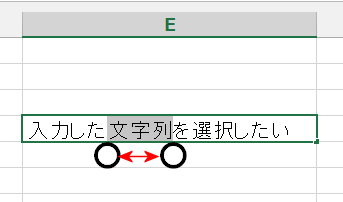- セル内に表示される丸いハンドルをスライドして文字列を選択します。