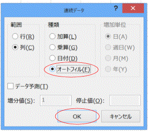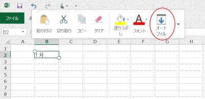 - セルの右下に[オートフィル]ボタンが表示されます。
