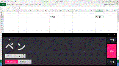 下図はペンで入力して変換された状態です。指で手書きすることも可能です。