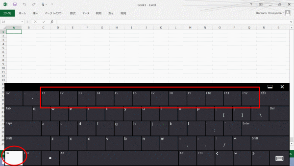 - 「Fn」をタップすると[F1]〜[F12]が表示されます。 (2013/10/25 記)