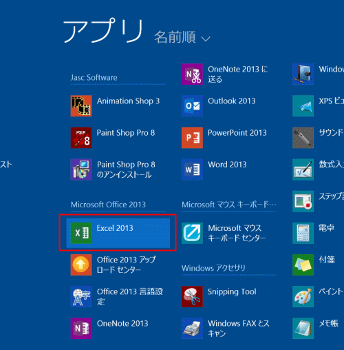 一覧の中のExcel2013のショートカットアイコンをタップ、またはクリックします。