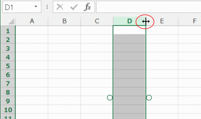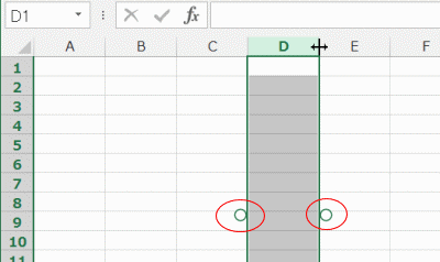- 列番号の右側に表示される両矢印をスライドすると、列幅を 広げる/狭める ことができます。