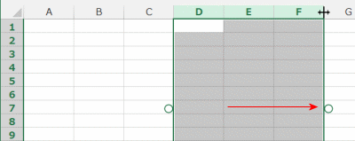 - 右側の丸いハンドルをスライドして、D:F列を選択した状態です。