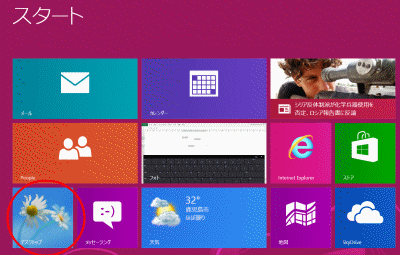- スタート画面で[デスクトップ]をタップして、デスクトップを表示します。