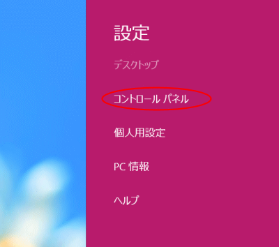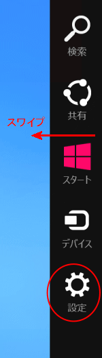 - デスクトップ画面の右端をスワイプしてチャームを表示し、[設定]をタップします。