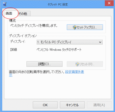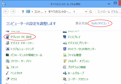 [タブレット PC 設定]をタップします。
