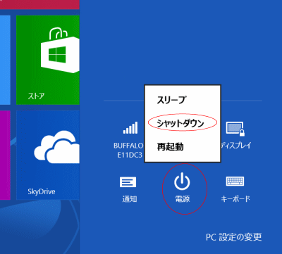 - スタート画面からWindows 8を終了する(シャットダウン)する方法です。