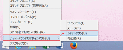 - Windows 8.1ではスタートボタン(StartTip)が復活しましたので、デスクトップ画面のスタートボタンから終了することもできます。
