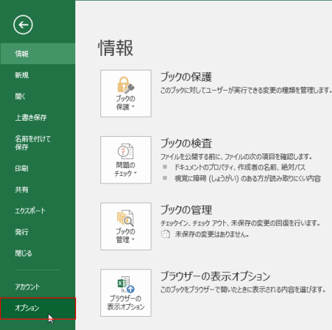 - [ファイル]タブをクリックして、[オプション]を選択します。
