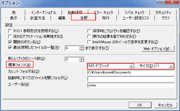 下図はExcel2002のオプションの[全般]タブのようすです。