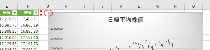 グラフの左上をタイトル行に配置することで、データの絞り込み時に消えることを防ぐことができます。