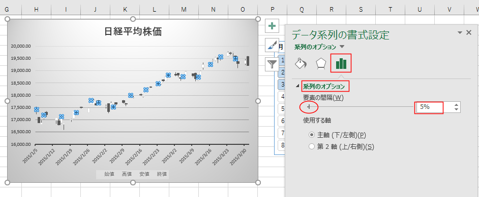 系列のオプションの要素の間隔を調整します。ここでは 5% に設定しました。