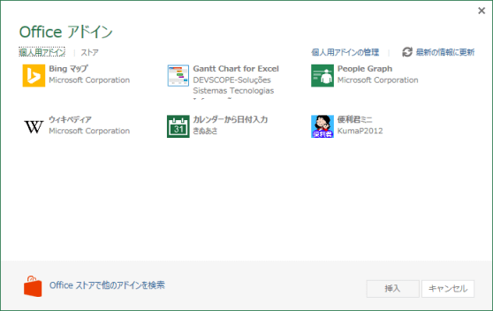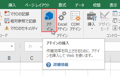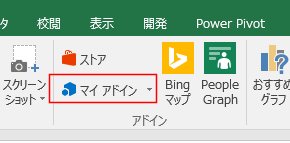 - Excel2016の[アドイン]をクリックすると Officeアドインが表示されます。