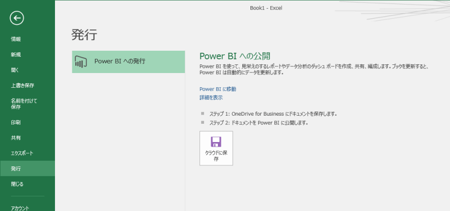 - [発行]を選択すると、Power BIへの公開が表示されます。