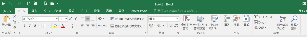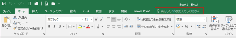 - [実行したい作業を入力してください]といった文字が見えます。操作アシスト機能と呼ばれる機能が追加されています。