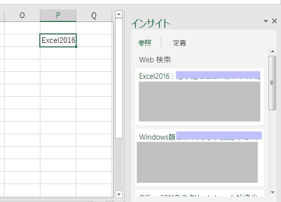 セルまたは文字列を選択してクリックすると、右端にインサイトウィンドウが表示され、Bingでの検索結果が表示されます。
