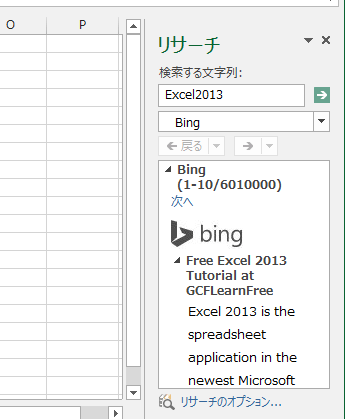 ちなみに、Excel2013でのリサーチは下図のような表示です。